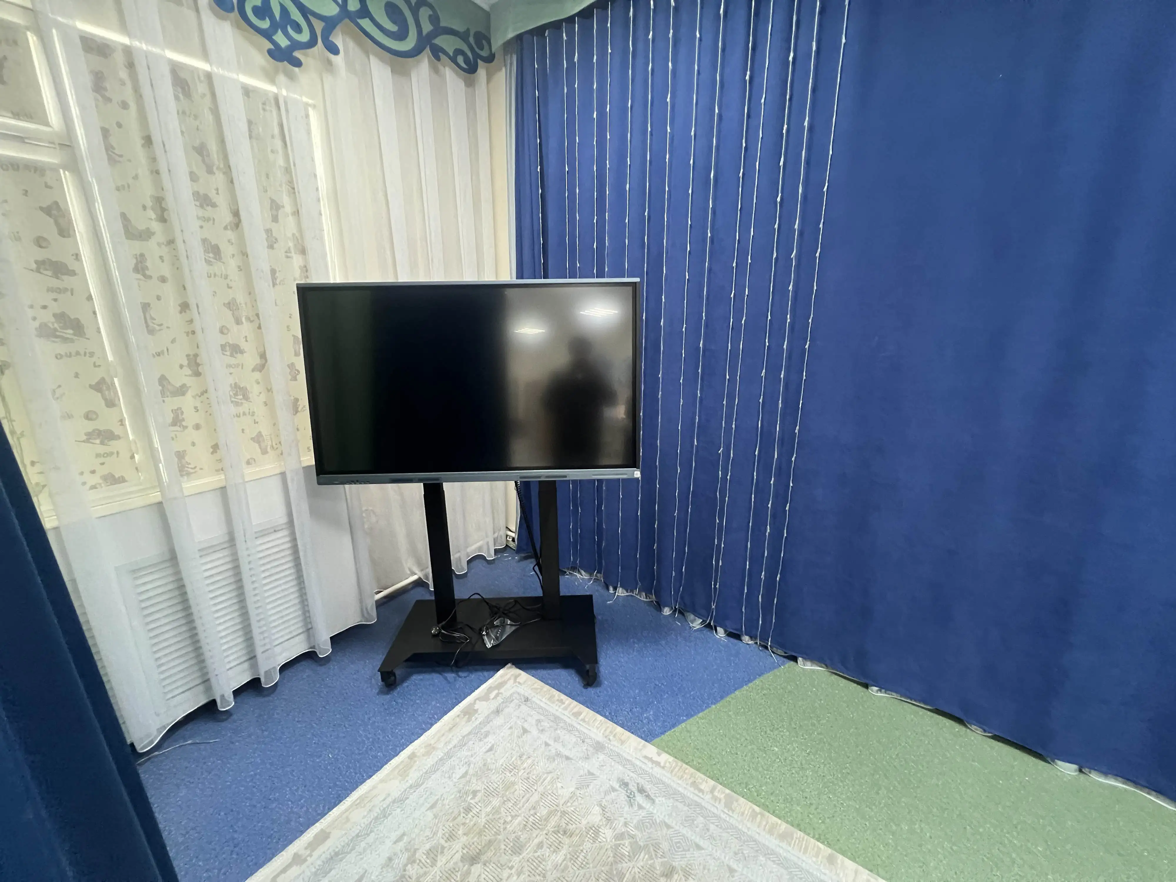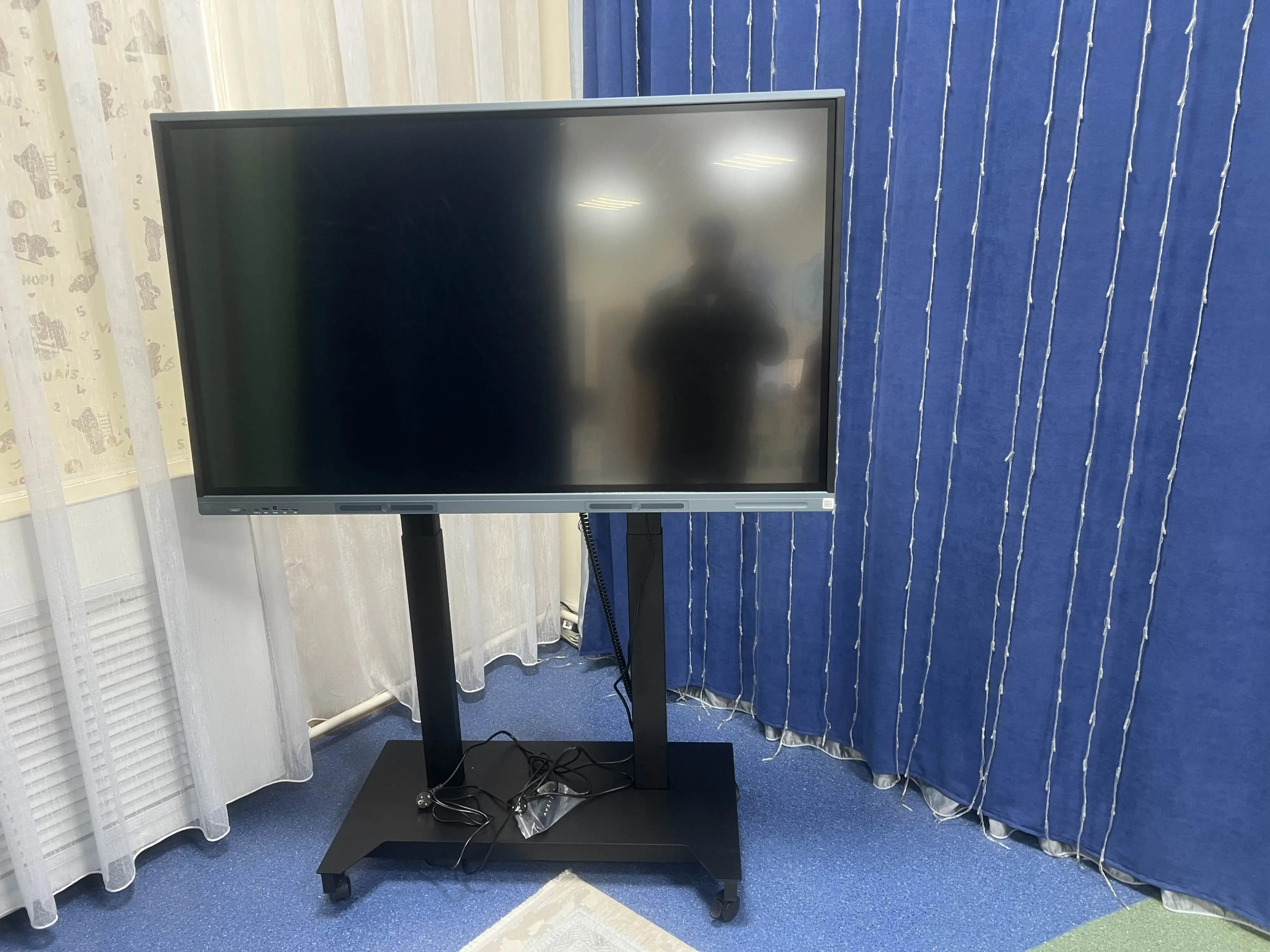 Modern tekerlekli hareketli uzaktan kumanda TV braketi elektrikli TV kurulum Metal yükseklik toplantı odası için ayarlanabilir TV arabası